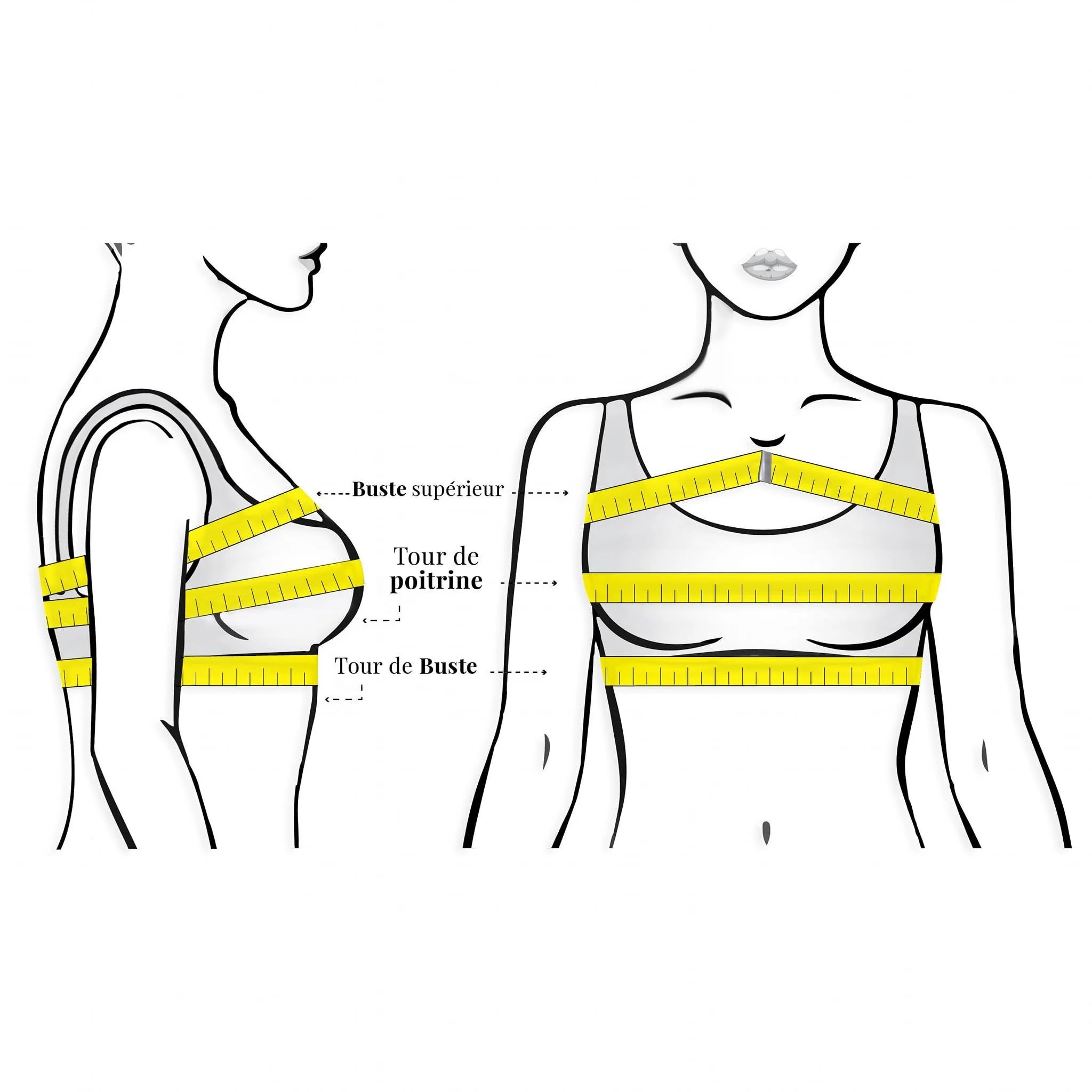 Lorsque vous prenez vos mesures, il faut les prendre en portant un soutien-gorge (un soutien-gorge qui vous fait bien). Évitez les ‘push-ups’.